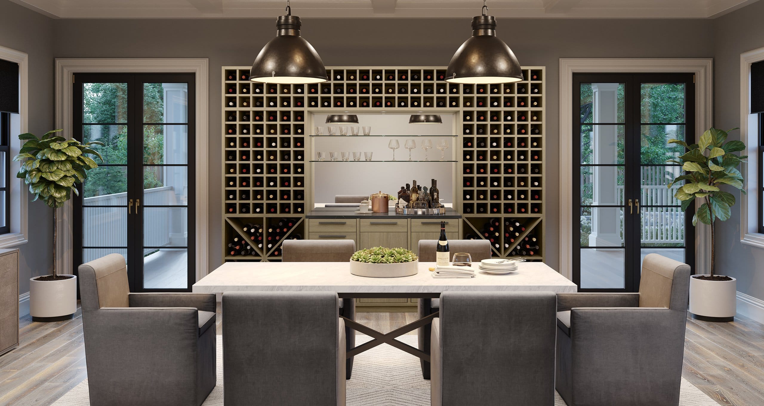 • Choose cabinets with built-in lighting to highlight your wine and glassware.